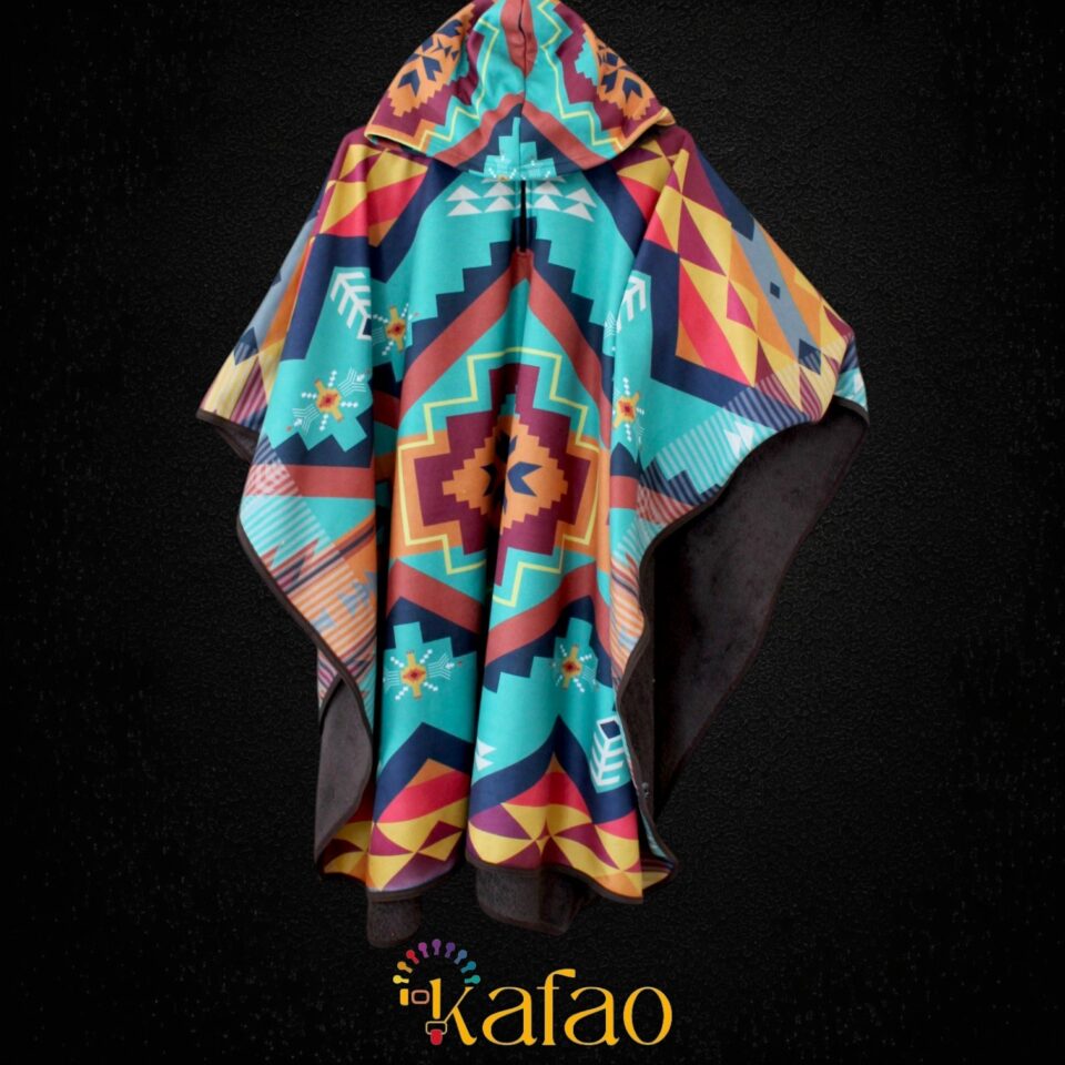 Poncho Andino Tribal Celeste, Naranja y Azul